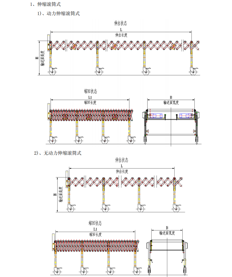 ■ 滚筒伸缩机分为:动力伸缩滚筒机