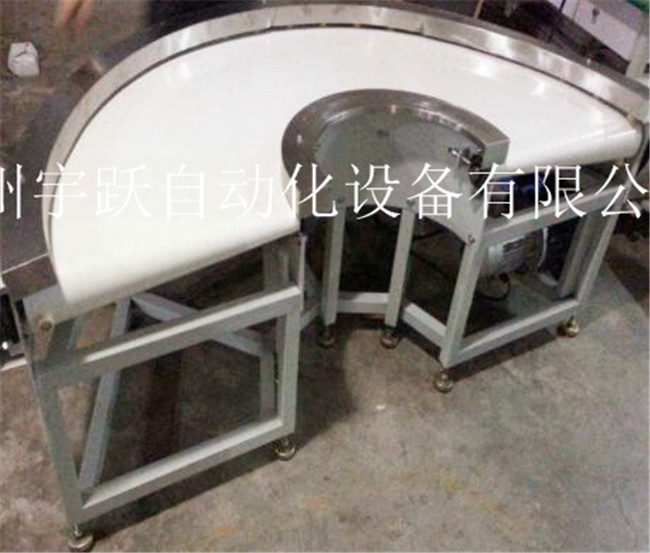 转弯皮带机结构形式有30度转弯皮带机、45度转弯皮带机、90度转弯皮带机、180度转弯皮带机, 能满足各种转弯输送的工艺要求。 转弯皮带机输送带有PVC、PU等多种材质,除用于普通物料的输送外,还可满足耐油、耐腐蚀、防静电等有特殊要求物料的输送。 采用专用的食品级输送带,可满足食品、制药、日用化工等行业的要求。 输送平稳,物料与输送带间没有相对运动,能够避免对输送物的损坏。 与其它输送机相比噪音较小,适合于工作环境要求比较安静的场合。 结构简单、便于维护;能耗较小,使用成本低 。